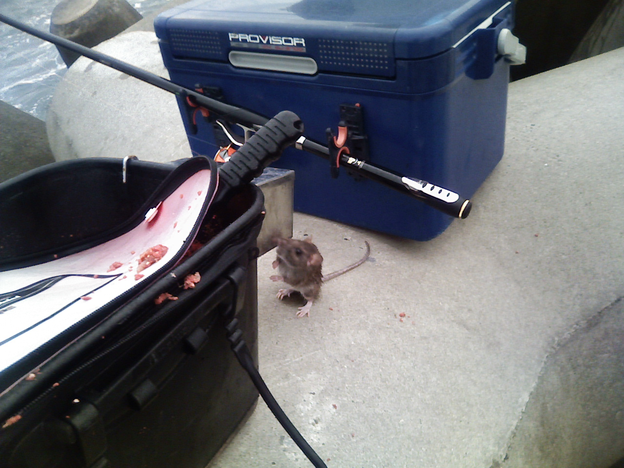 カッパを取りに行くまでの間、「俺の竿で釣りしてろ~」ってことで