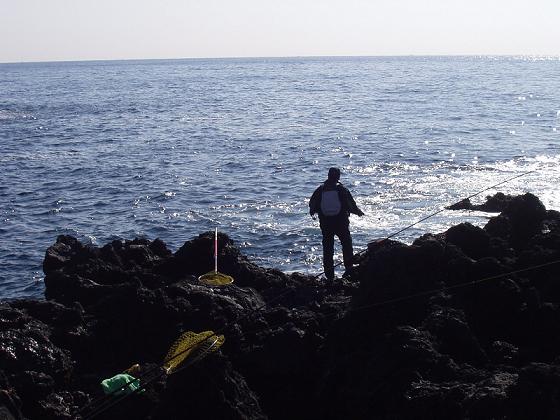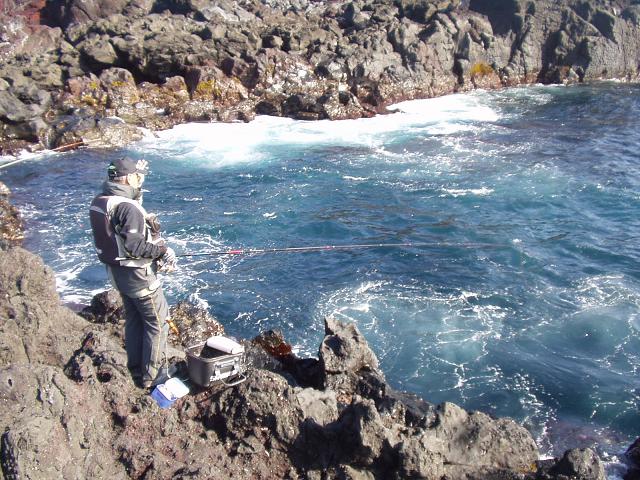 伊豆大島には、周遊道路いう島を一周している道路がありまして、その道路を走って海側に曲がれば、大体は磯場に行けます。途中、地元の方に道を尋ね、どうにか目指す磯場には、たどりつけました。